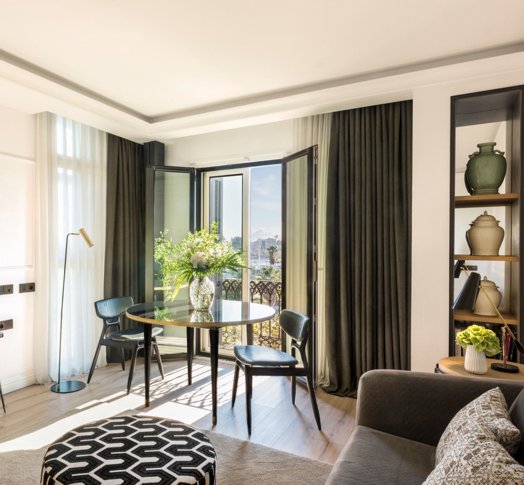 Table ronde Juliette avec pieds coniques brillants et détails en laiton