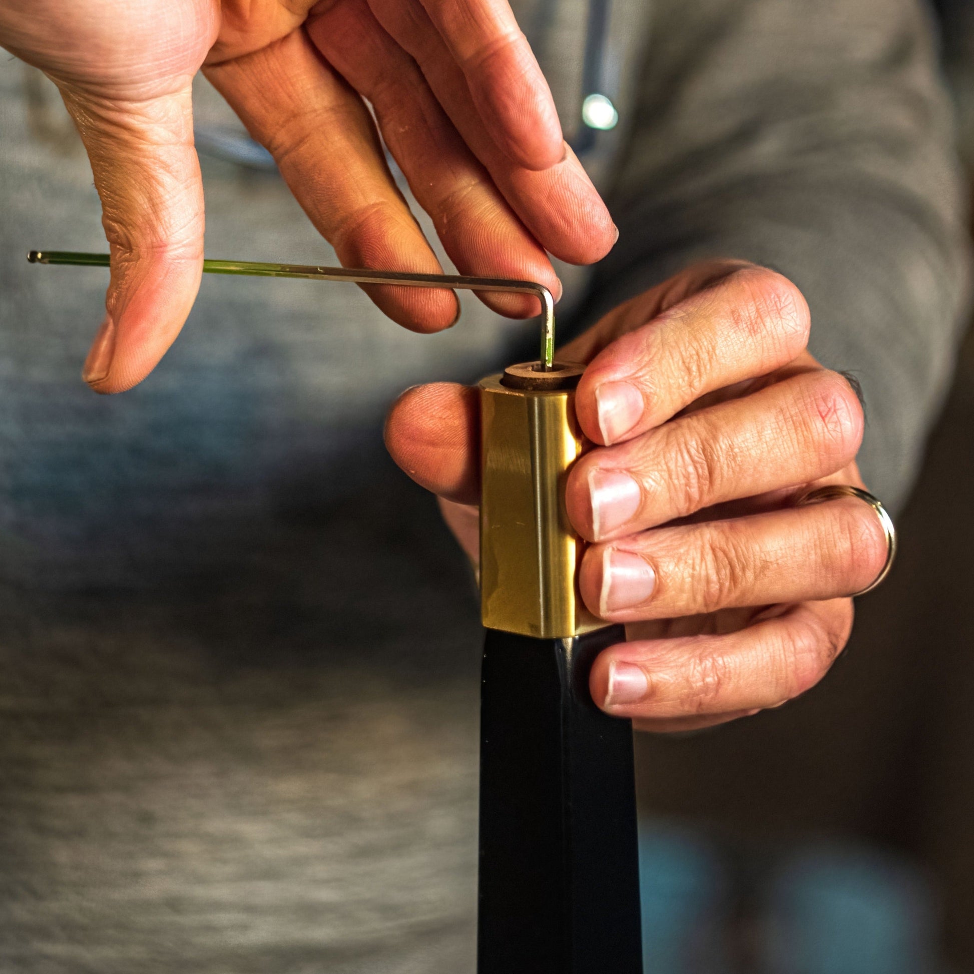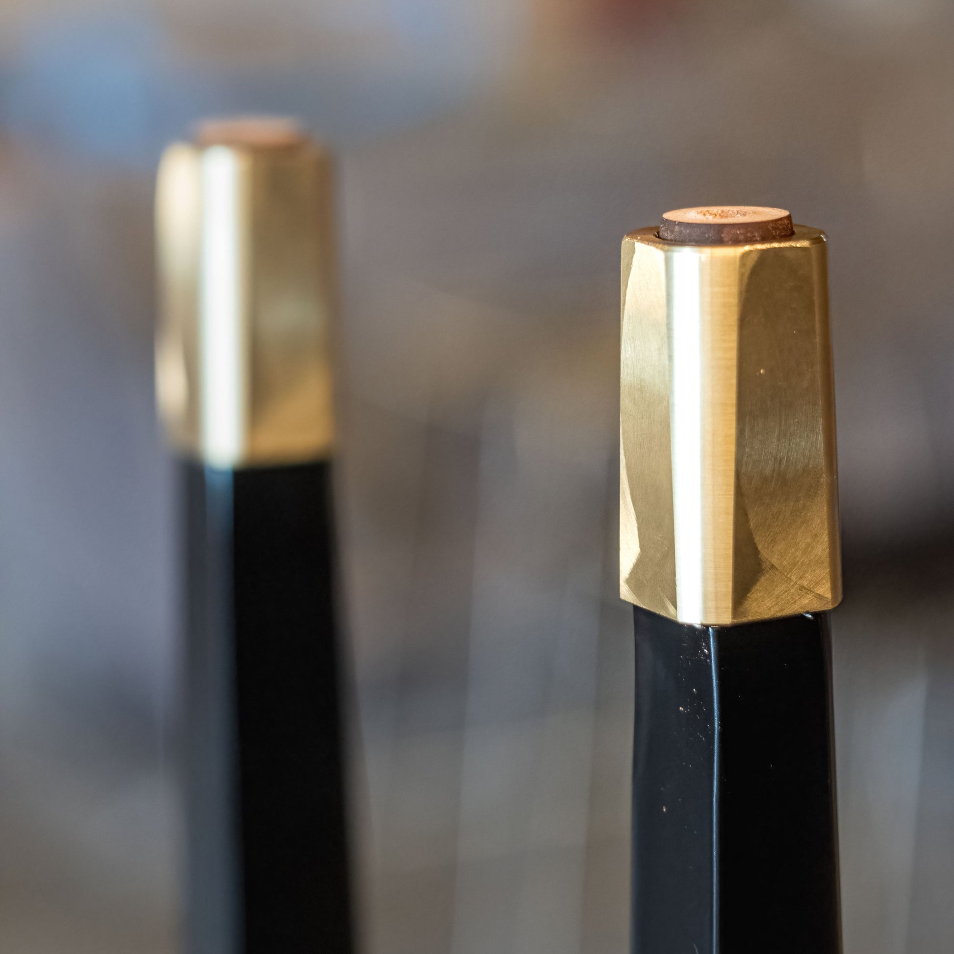 Métallerie : vous pouvez choisir entre la bande de laiton gravée en couleur naturelle, ou la finition patinée en laiton vieilli ou bleuie noire.