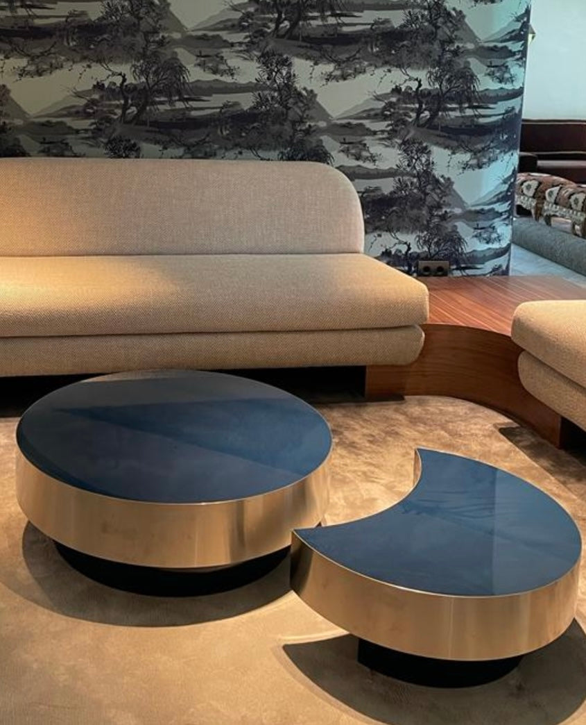 Luna Fusión est une charmante collection de tables qui combinent deux matériaux pour créer une esthétique polyvalente. Le plateau de table en stratifié brillant a une sophistication raffinée puis est complété par un contour en laiton ou en acier, ajoutant une touche de luxe discret à n'importe quel espace.