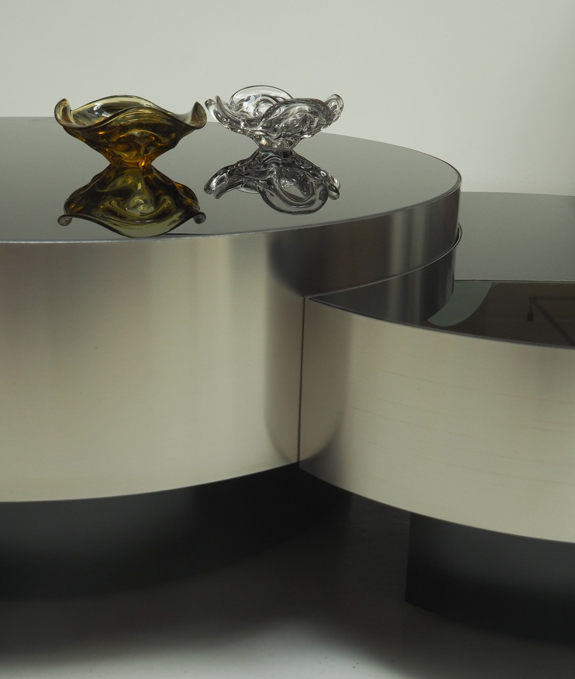 Matériaux : Vous pouvez choisir des placages en chêne naturel ou en noyer, ou choisir de recouvrir entièrement la table avec une feuille de laiton ou d'acier satiné