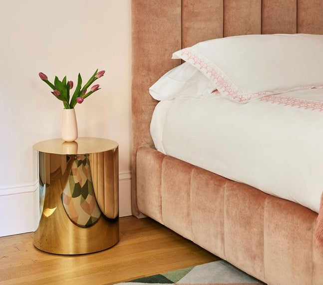 Matériaux : Vous pouvez choisir des placages en chêne naturel ou en noyer, ou choisir de recouvrir entièrement la table avec une feuille de laiton ou d'acier satiné