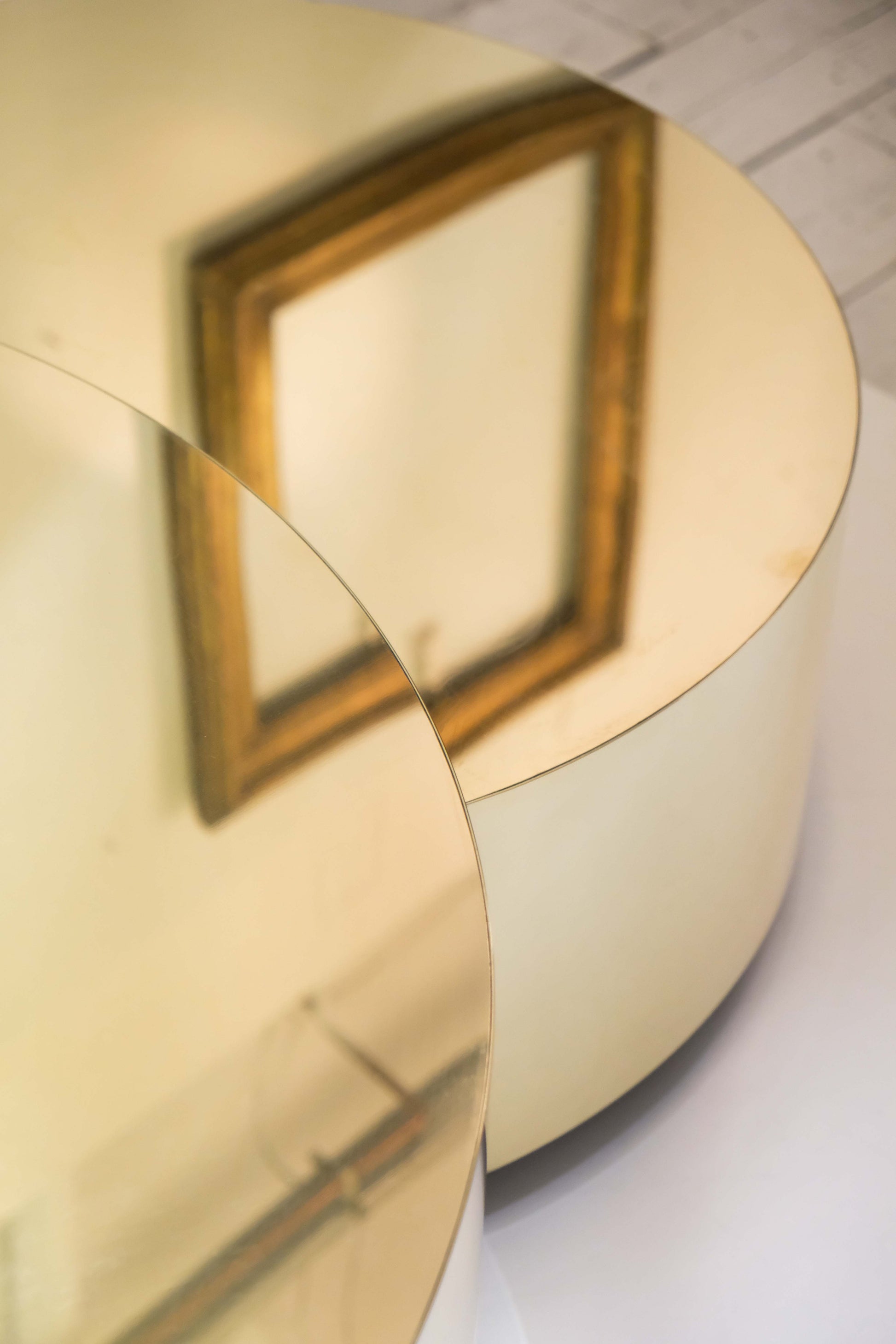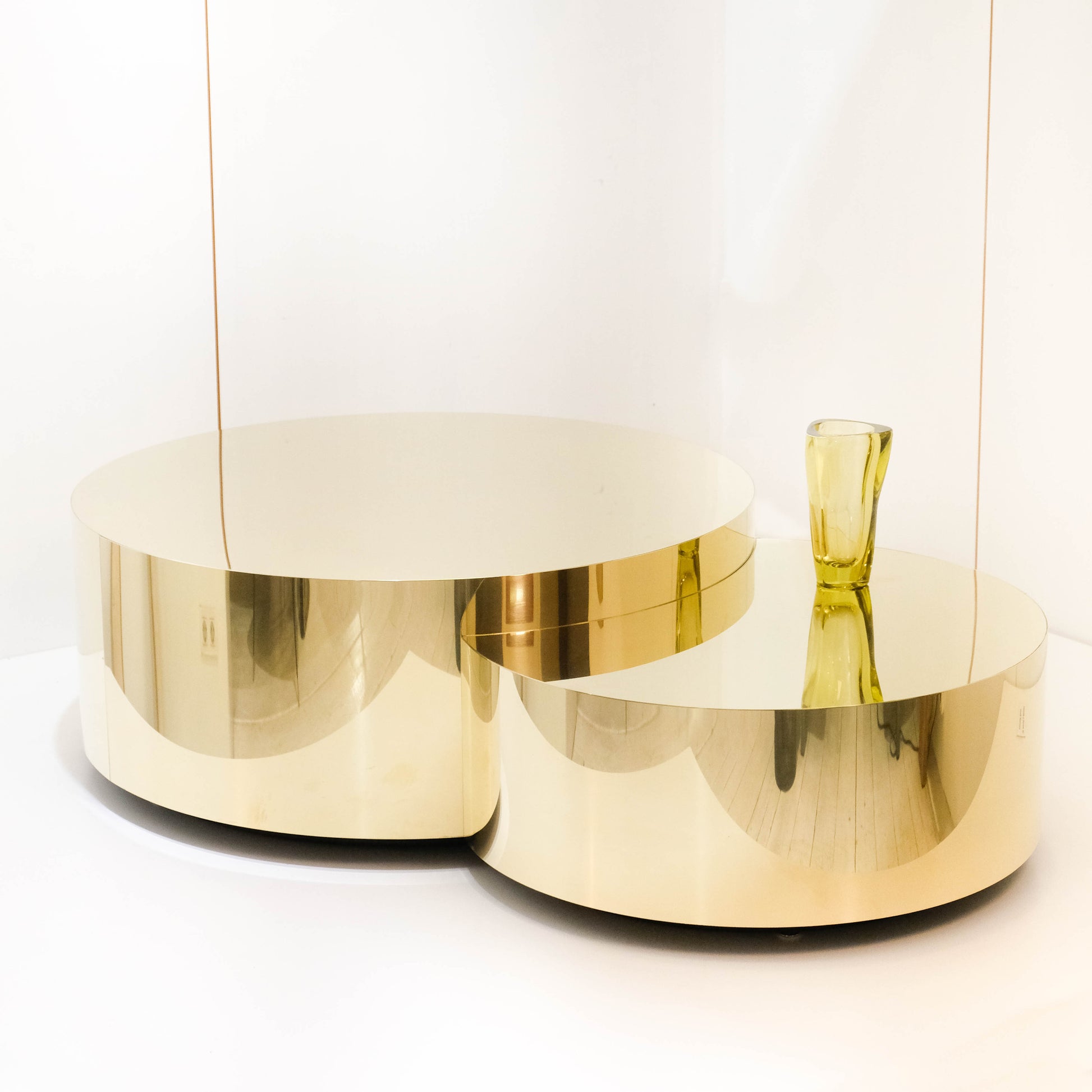 L'ensemble de tables Luna Brass/Steel, fabriqué à la main dans notre atelier, est entièrement réalisé en laiton ou en acier satiné, et allie l'élégance des formes de la pleine lune et de la demi-lune dans un design rétro et élégant. Cette combinaison de tables convient aussi bien dans un salon comme tables d'appoint que dans une réception d'hôtel ou de restaurant. Vous pouvez emporter ces tables partout où vous pouvez l'imaginer, nous les fabriquons sur mesure pour n'importe quel projet.